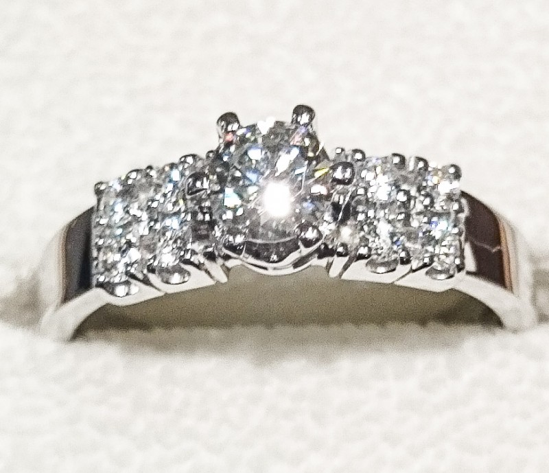 Ibland vill kunderna ha en annorlunda slipning på sin diamant. Den här kunden hade hittat stenen på en utlandsresa. Vi gjorde ringen med en diamant krans. Vitguld Diamanter